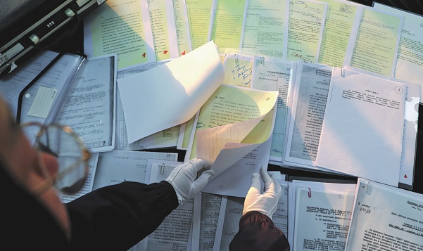A staff member from China's Central Archives arranges on Wednesday a batch of Russian-provided archive copies related to Unit 731, a Japanese biological warfare unit that operated during World War II. ZOU HONG/CHINA DAILY