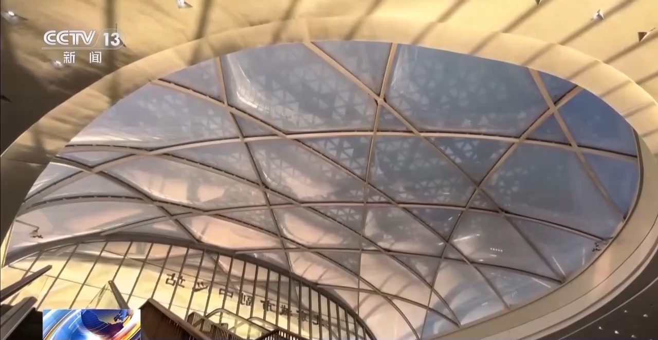 总台记者高雪在现场看到,大厅配备了5个采光井,这些采光井采用了气泡枕膜技术,太阳光被自然地引入到地下32米处的候车大厅。也就是说,未来乘客在站台上候车,也可以沐浴在自然光下。