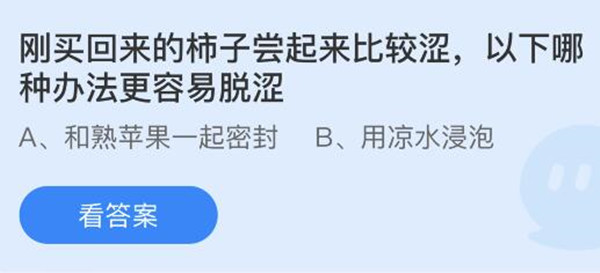 问题2:刚买回来的月日柿子尝起来比较涩,以下哪种办法更容易脱涩?答案