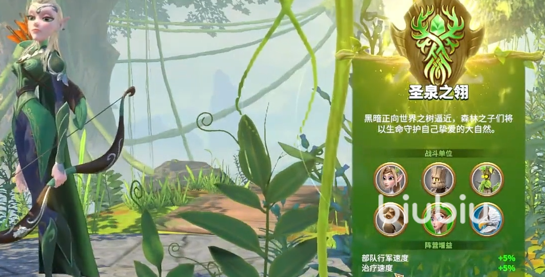 精灵族是属于速度最快的种族,精灵族本身的天赋是增加治疗和行军速度。他们本身的移动速度和攻速都是比较快的,但是防御能力除了一些特殊兵种外都比较脆,这个种族开荒能力一般,但是中后期作战能力很强。