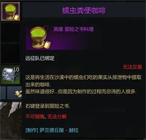 蠕虫粪便咖啡:去找厨师完成制作,需要准备900银币,命运完成制作后使用即可;