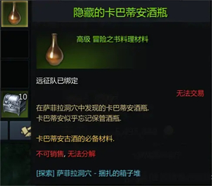 隐藏的卡巴蒂安酒瓶:进入副本-萨菲拉洞穴,获得如图所示材料即可;