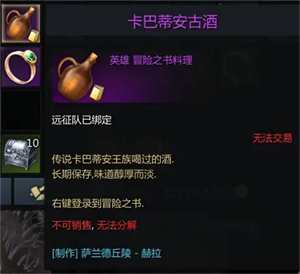 卡巴蒂安古酒:找厨师完成制作,需要准备1400银币,完成制作后使用即可;