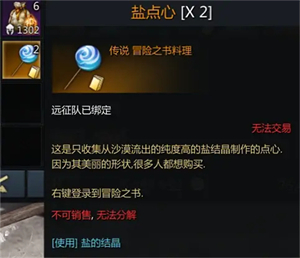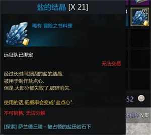 盐的结晶:盐的结晶需要摸盡可能多,在背包中直接使用,使用有概率會(huì)變成需求物品“鹽點(diǎn)心”;