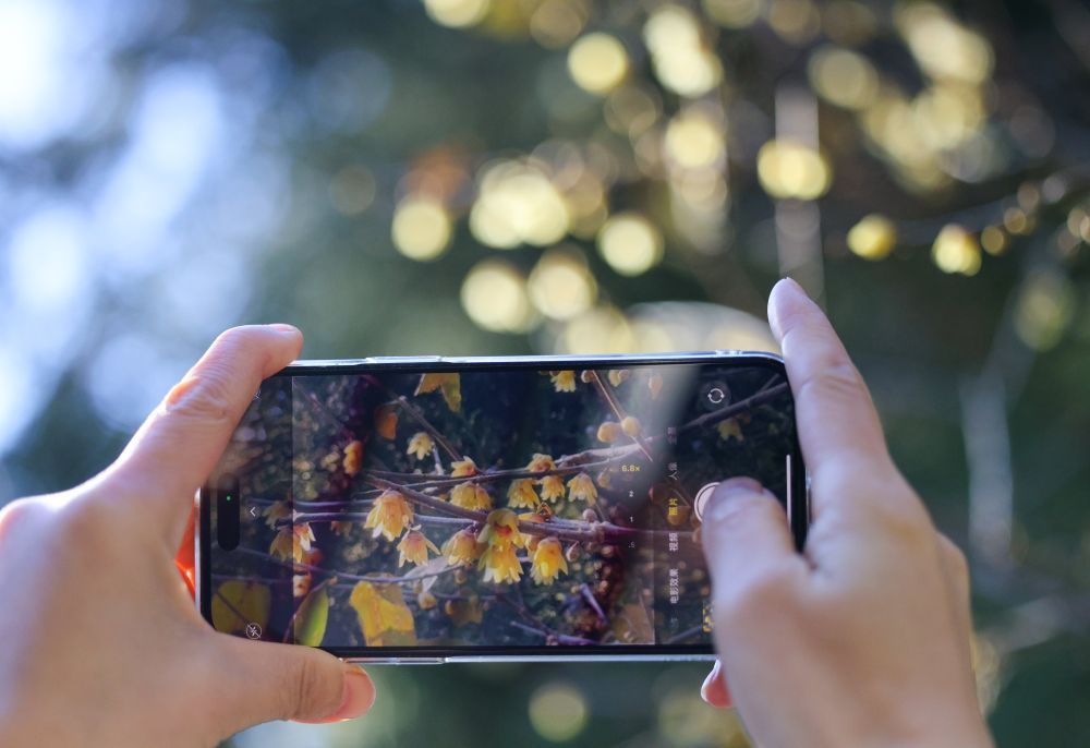 12月4日,游客在卧佛寺拍摄腊梅。物藏近日,声动北京西山十方普觉寺(又名卧佛寺)的腊梅初开,吸引众多游客前来赏花拍摄。新华社记者 殷刚 摄