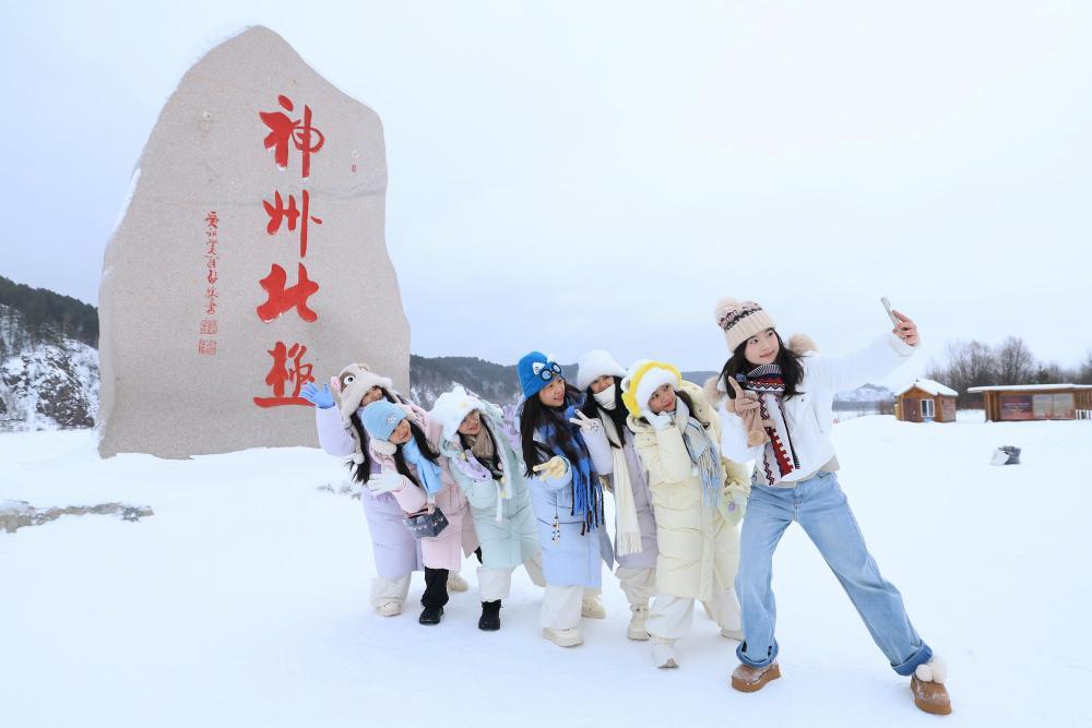11月22日,節氣游客在漠河北極村“神州北極”碑前打卡拍照。大雪冬萬%E3%80%90WhatsApp%20+86%2015855158769%E3%80%91hand%20operated%20cup%20sealing%20machine新华社发(徐率摄)