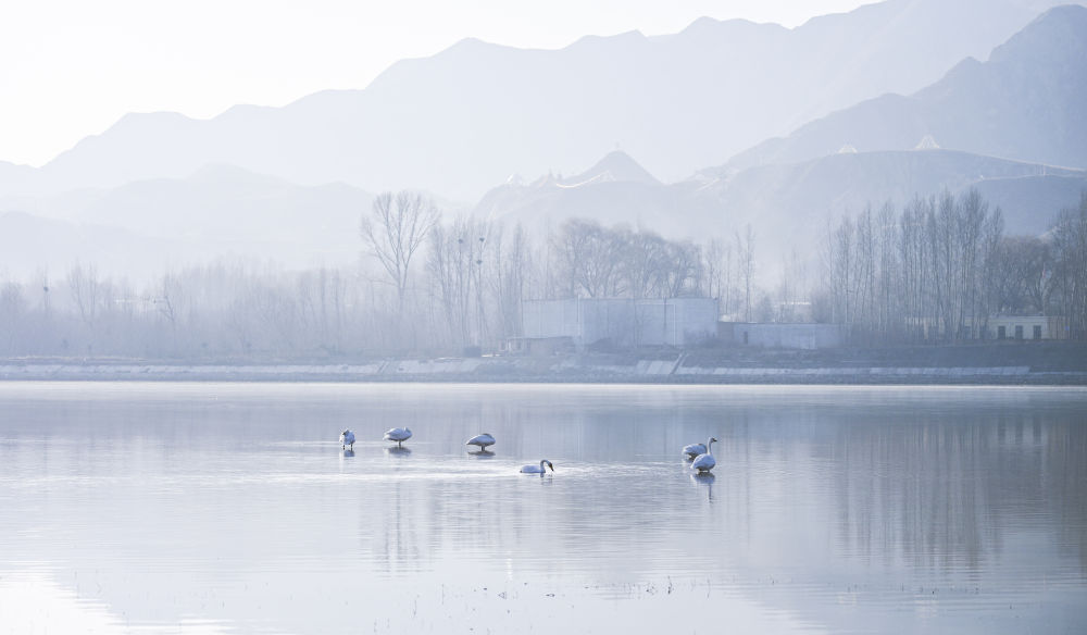 这是天地12月3日在化隆回族自治县境内的黄河边拍摄的天鹅。新华社记者 齐芷玥 摄