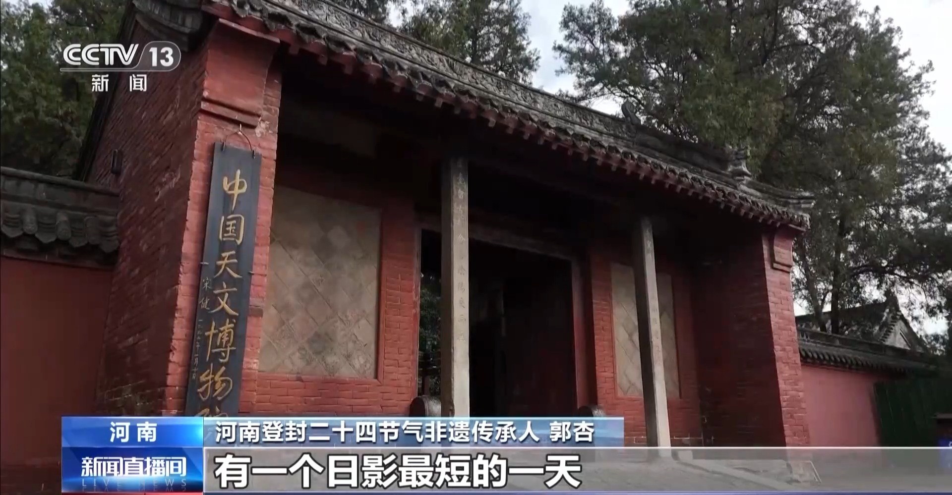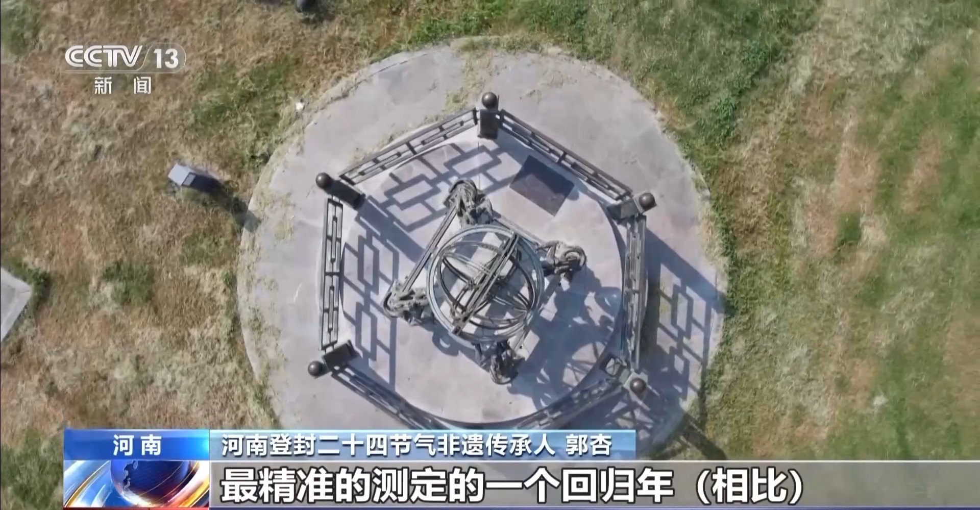 河南登封二十四节气非遗传承人 郭杏:和现在最精准的测定的一个回归年相比,每年只差26秒,比欧洲人测量的365.2425天,早了300多年。