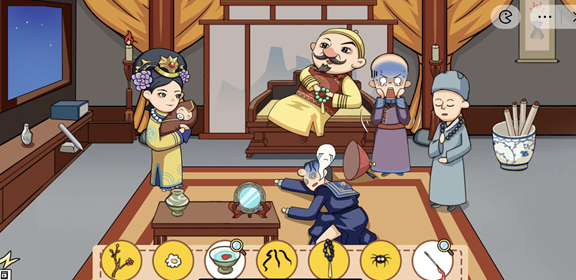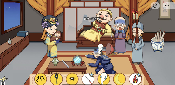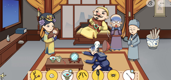 3、剧情将太医的找茬头往地上磕三次即可获得灵魂,将太阳滑动走即可获得月亮,茬滴将左边的蜡烛点燃即可在右边的蜡烛上获得火焰。