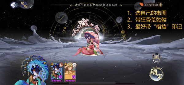 1、打星之子会掉落秘宝可选:秘宝很重要!最后boss战二阶段很好用!!优先推荐:防御御守、火之卷、雨之卷,因为二阶段boss会封式神技能!会杀召唤物!所以要防御御守扛伤害,雨之卷解控等,这样boss死的快,确保回合数控制在35次以内,就能拿极!