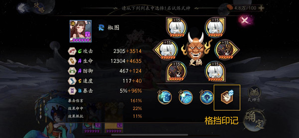 3、椒图最好用自己的,狂骨荒骷髅,带格挡印记(第一次刷六道没有可以不带,刷完掉印记后有了就带上,好用)。