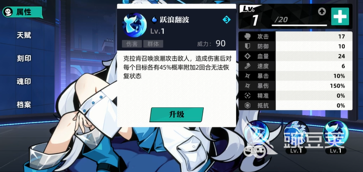 跃浪翻波:使用后将召唤浪潮对敌人发动群体攻击,技能本身威力只有九十点,伤害不算高,不过它有一定几率可以为敌人附加上无法恢复的状态,这一状态限制了敌人的回复,从而提高了己方击杀它们的可能。