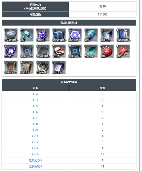 小伙伴们作为平民玩家的白荆福利,通过养成材料在计算器我们可以快速计算出每个节点需要囤积的回廊资源数量,当开荒卡等级、养成体力富裕不知道刷什么来消耗时就可以选择使用,避免乱刷体力造成开荒浪费。