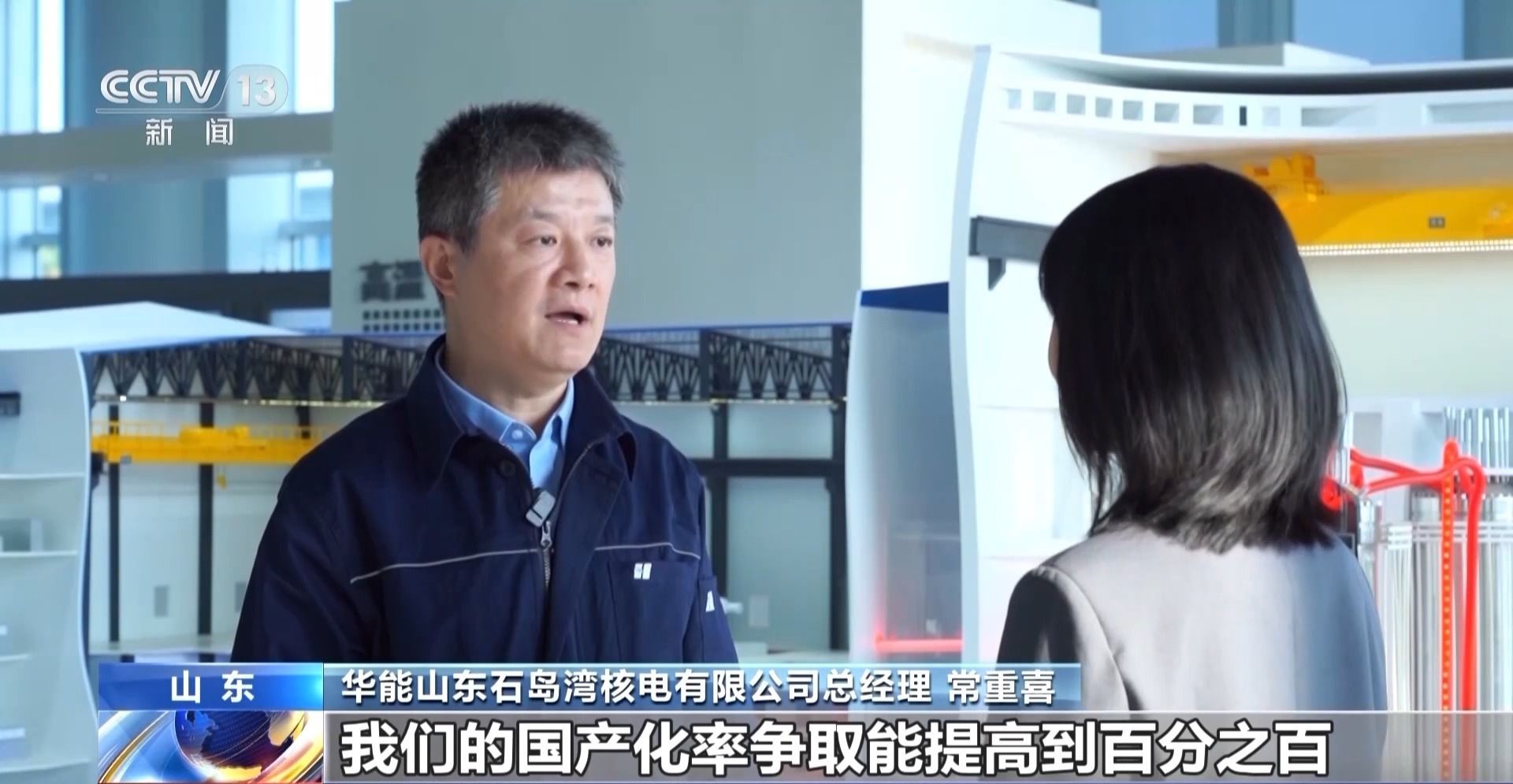 华能山东石岛湾核电有限公司总经理 常重喜:在“十五五”期间,國產化率爭取能提高到百分之百,同時提升整體系統設備的可靠性。在保證機組安全穩定運行的同時,我們還會再做進一步的研究,讓大國重器發揮更大的效能和作用。