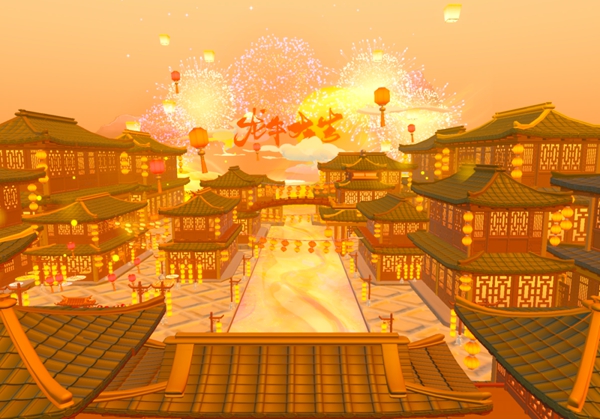 喜庆庙会横纵乐园,烟火绽放点亮夜空