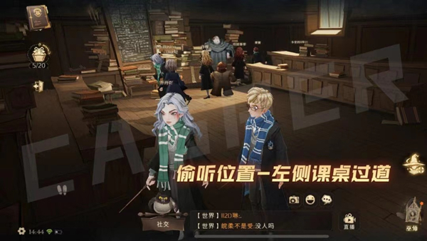 2、点击对话框后,移动到左侧课桌过道偷听。