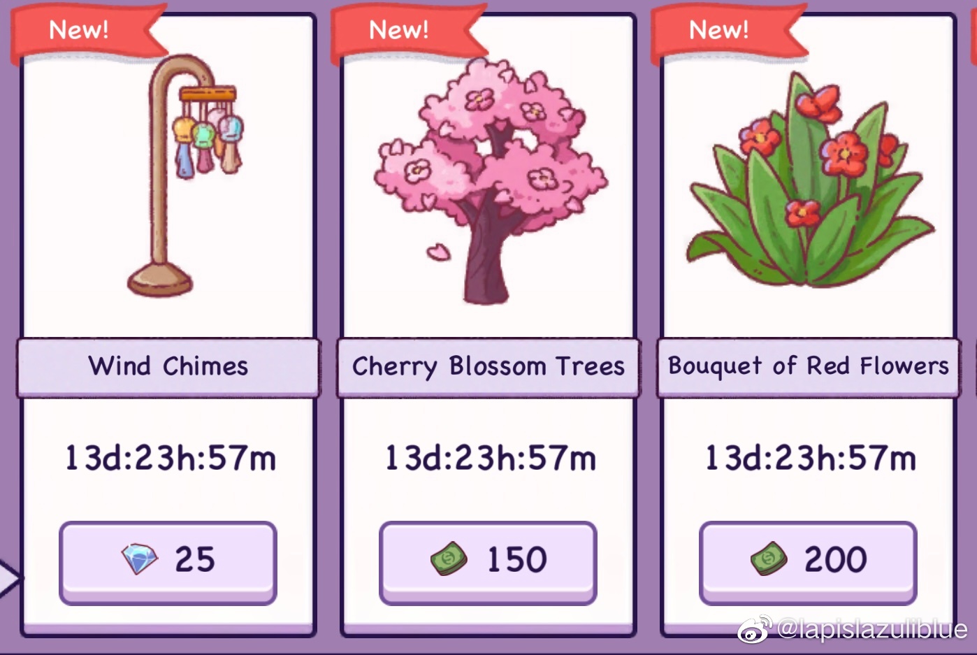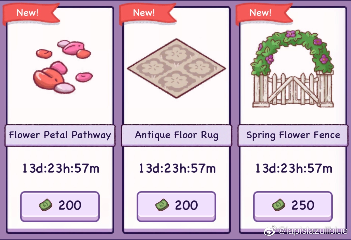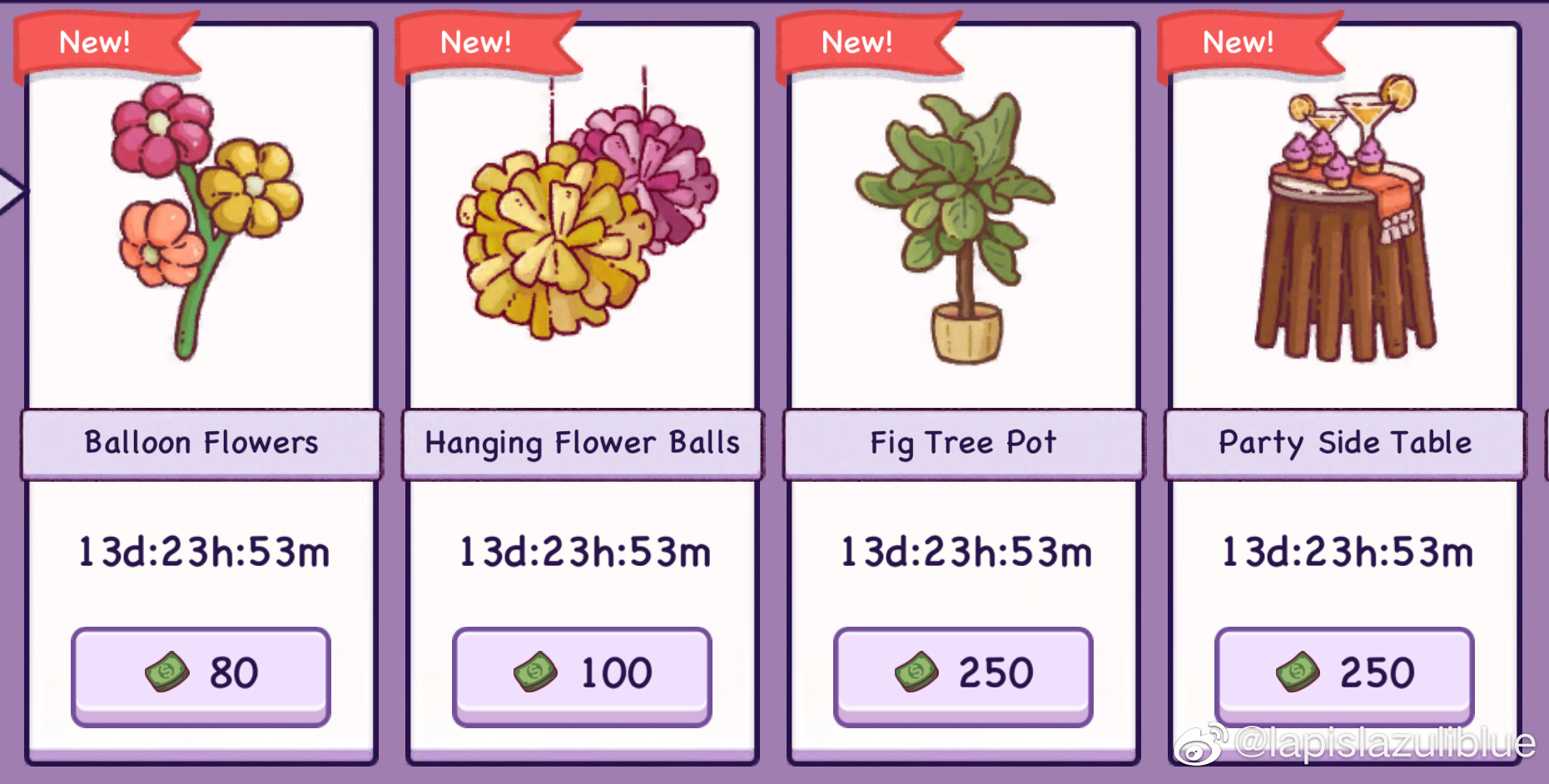 注:花盆除了去年的攻略剩下的都在商店界面显示“Kevin替你保管”,是无法购买的,而p1和p2的柜台上都有一个瘦高的花瓶,推测应该跟节日活动相关。