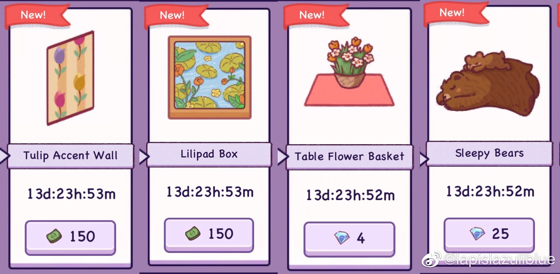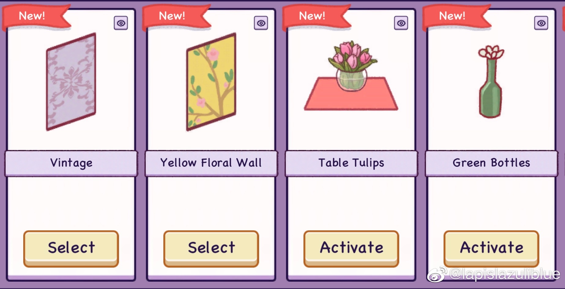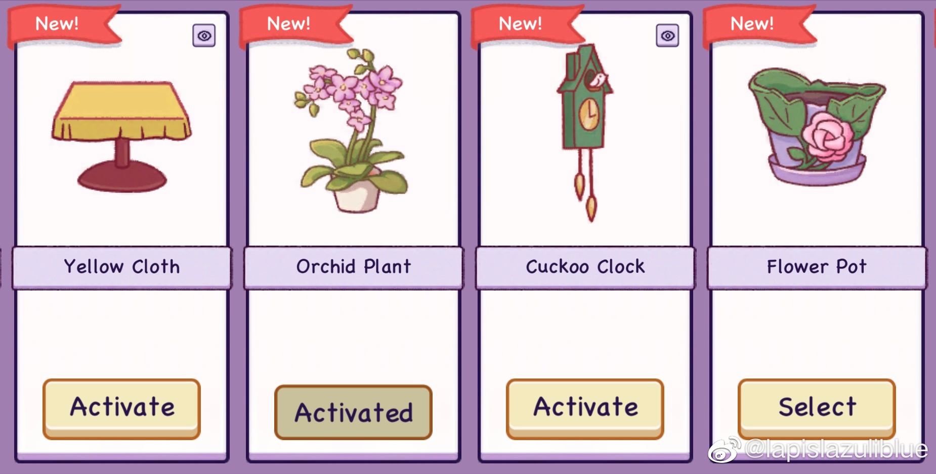 注:花盆除了去年的攻略剩下的都在商店界面显示“Kevin替你保管”,是无法购买的,而p1和p2的柜台上都有一个瘦高的花瓶,推测应该跟节日活动相关。