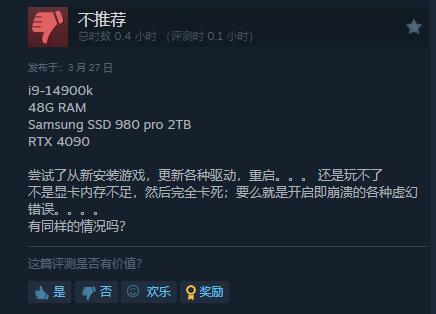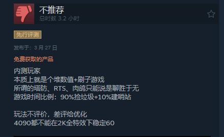 差评主要集中在优化上,装前除了闪退和崩溃现象频出外,哨S上获高配置环境下表现效果也不太尽如人意。褒贬不一其他方面上,也有玩家指出游戏UI、部分设计(大量捡垃圾时间等)以及人物建模等处也都存在些问题。