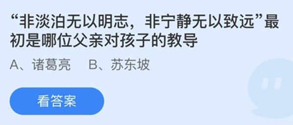 解析:诸葛亮在《诫子书》中写下了这句话,教导儿子要淡泊明志。答案